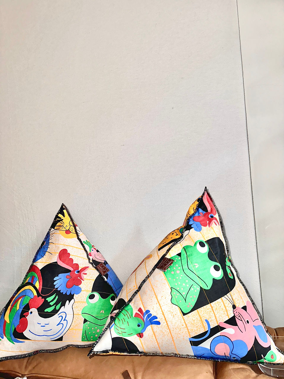 (Project)LOMs distinctive throw cushions are inspired by opulent historical interior, fused with a contemporary and joyous wink. Experimental shapes are blended with comfort, offering a one-of-a-kind decor addition. Each piece is meticulously handcrafted from an evergrowing selection of premium leftover, deadstock, and vintage materials. The fillings consist of down or virgin wool fibers, sourced from regional shepherds, depending on the desired level of comfort. Because of the limited nature of these materials, many of (Project)LOM’s collections feature unique pieces or very small quantities made to order.